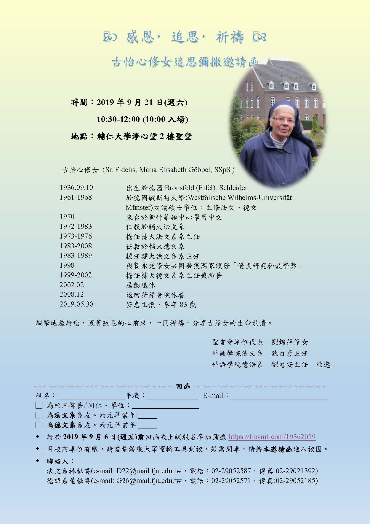 2019/08/15 16:49 [一般公告]敬邀參加2019.09.21(週六) 古怡心修女感恩追思彌撒