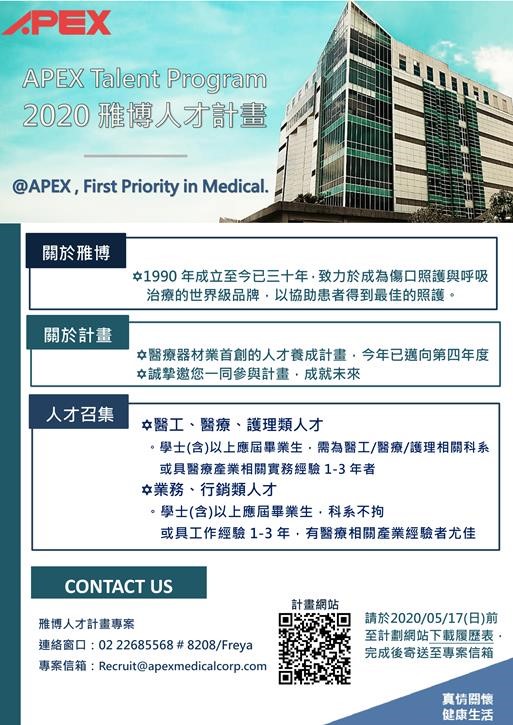 【雃博醫材】 2020 雃博人才計畫 (APEX Talent Program)