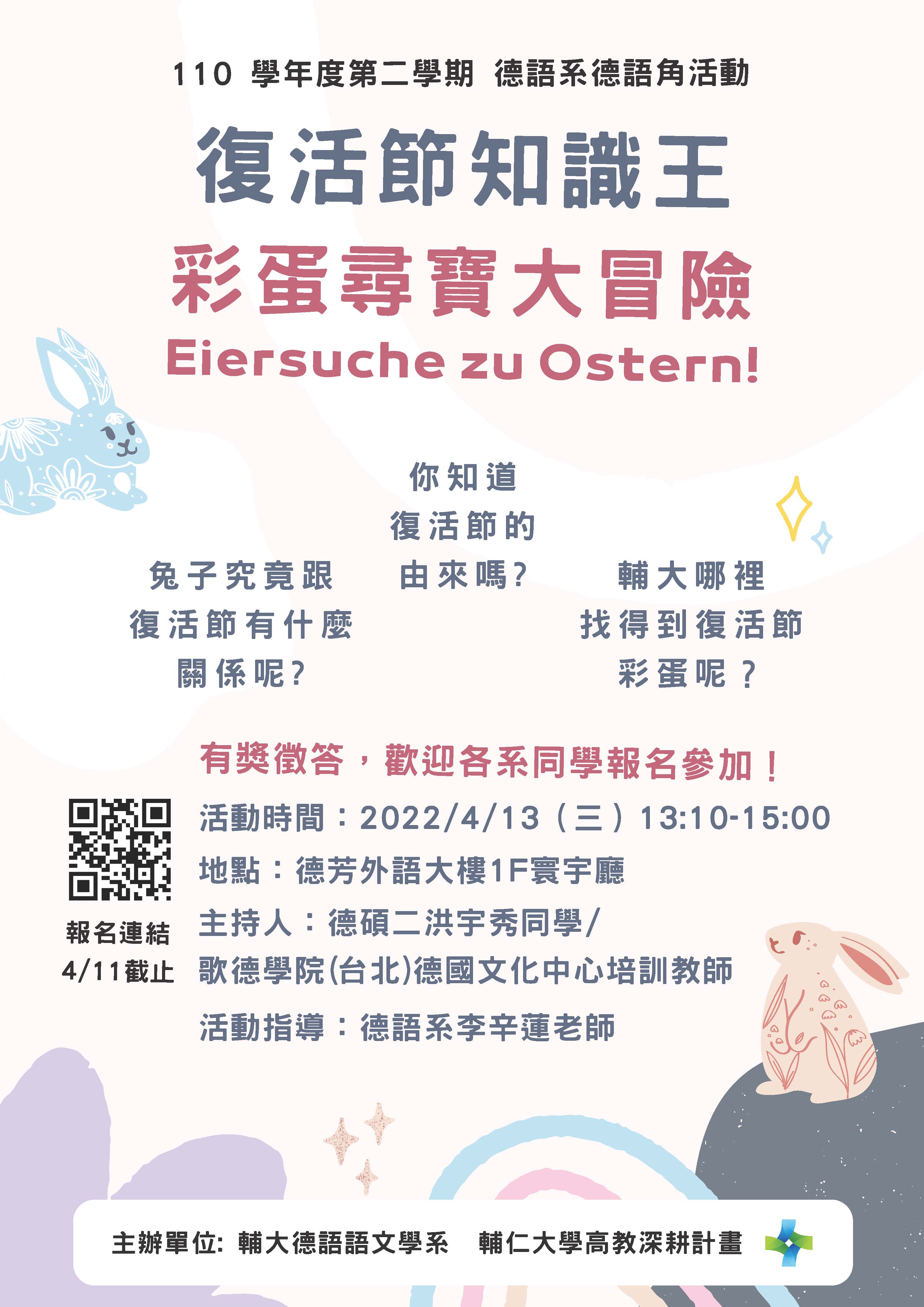 2022/03/24 16:12 [課外學習活動]歡迎參加4月13日(三)德語角活動: 復活節知識王.彩蛋尋寶大冒險