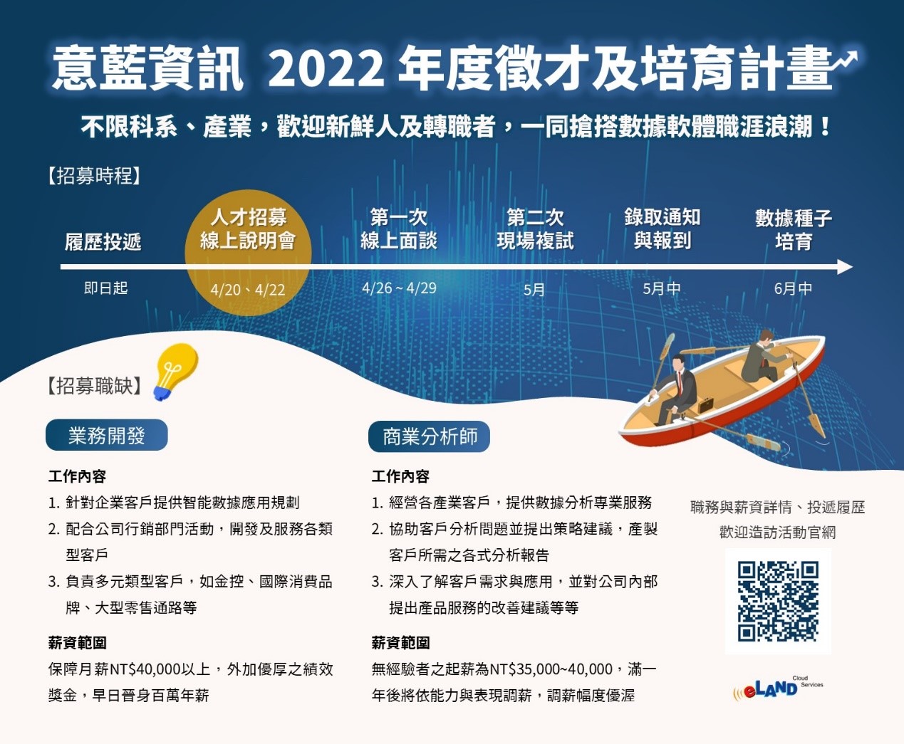 2022/04/13 10:26 [企業徵才]意藍資訊【2022年度徵才 搶搭智能數據職涯熱潮!】4/20.4/22線上說明會