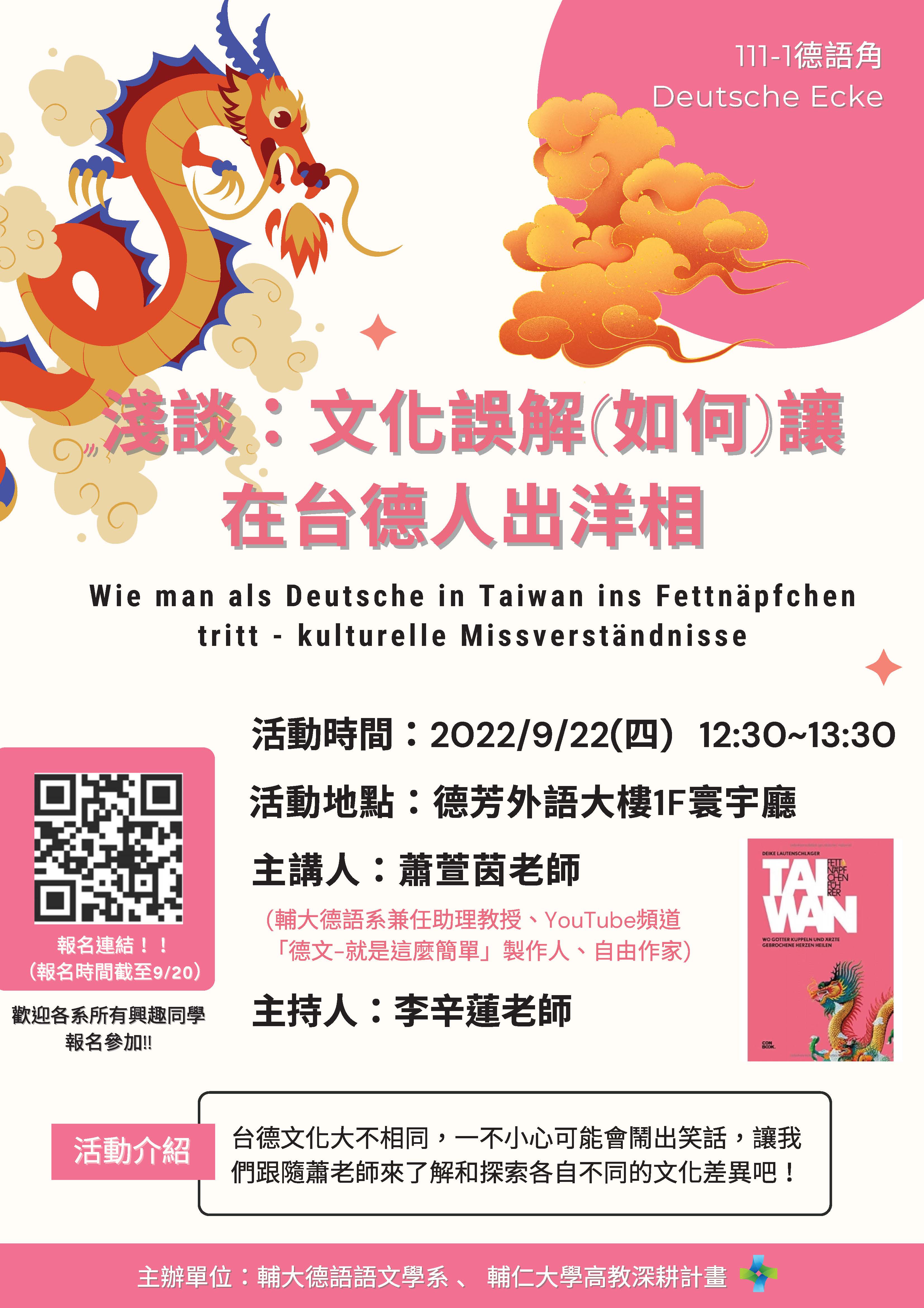 2022/09/05 17:46 [課外學習活動]歡迎參加9月22日(四)德語角活動~淺談:文化誤解(如何)讓在台德人出洋相