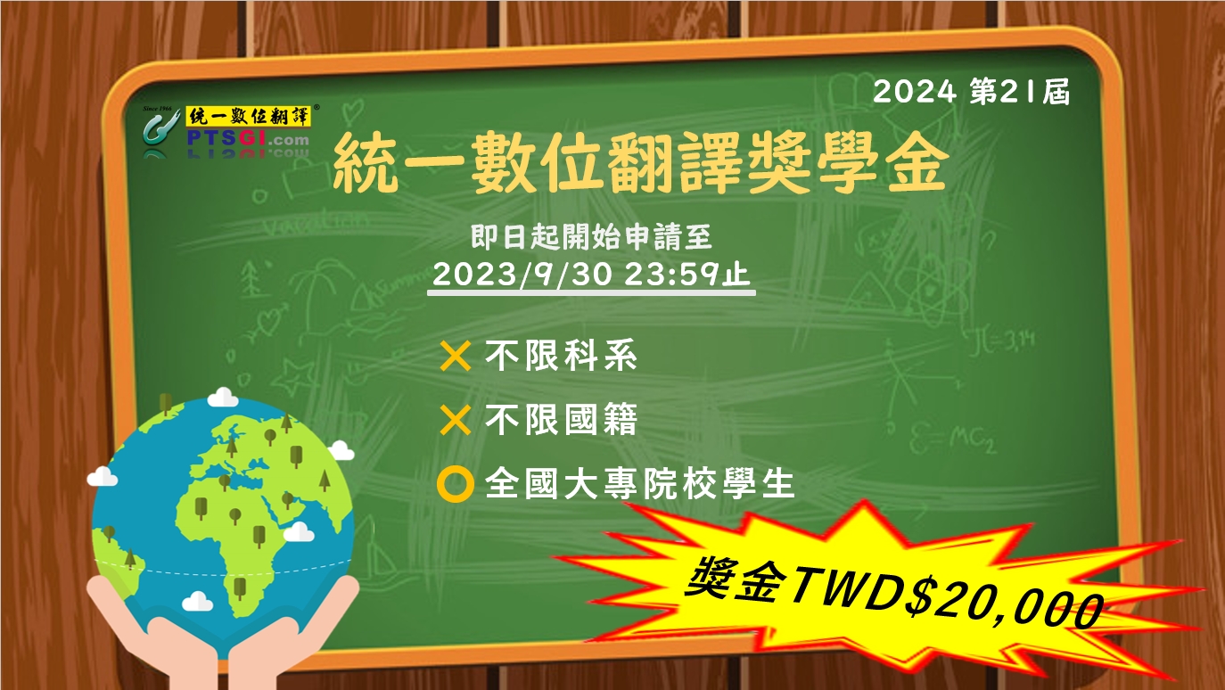 2023/06/04 10:20 [獎助學金]「統一數位翻譯(PTSGI.com)2024第21屆翻譯獎學金」申請正式開跑