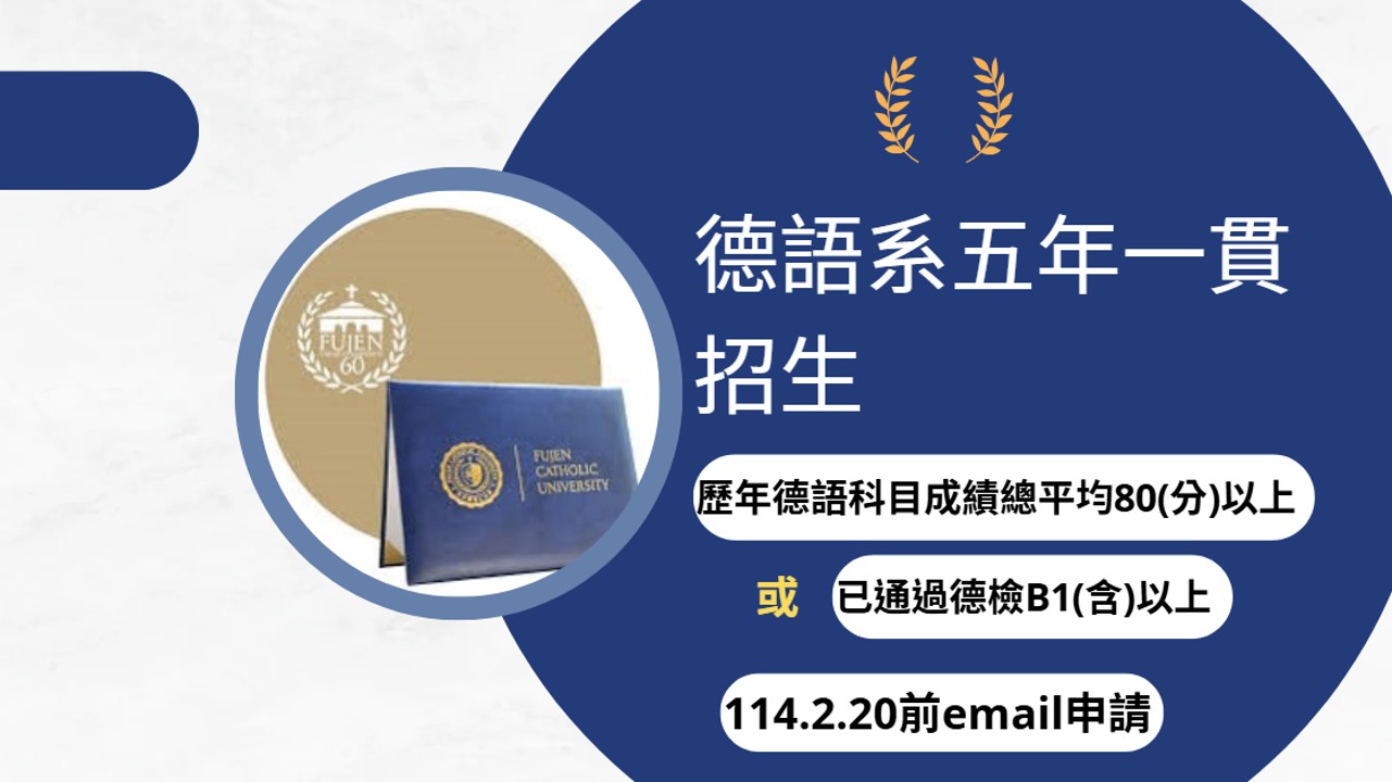 2025/02/04 13:29 [系辦課務公告]113學年度第2學期德語系學⽣修讀「學、碩⼠學位五年⼀貫辦法」甄選申請公告 (114.2.20週四截⽌)