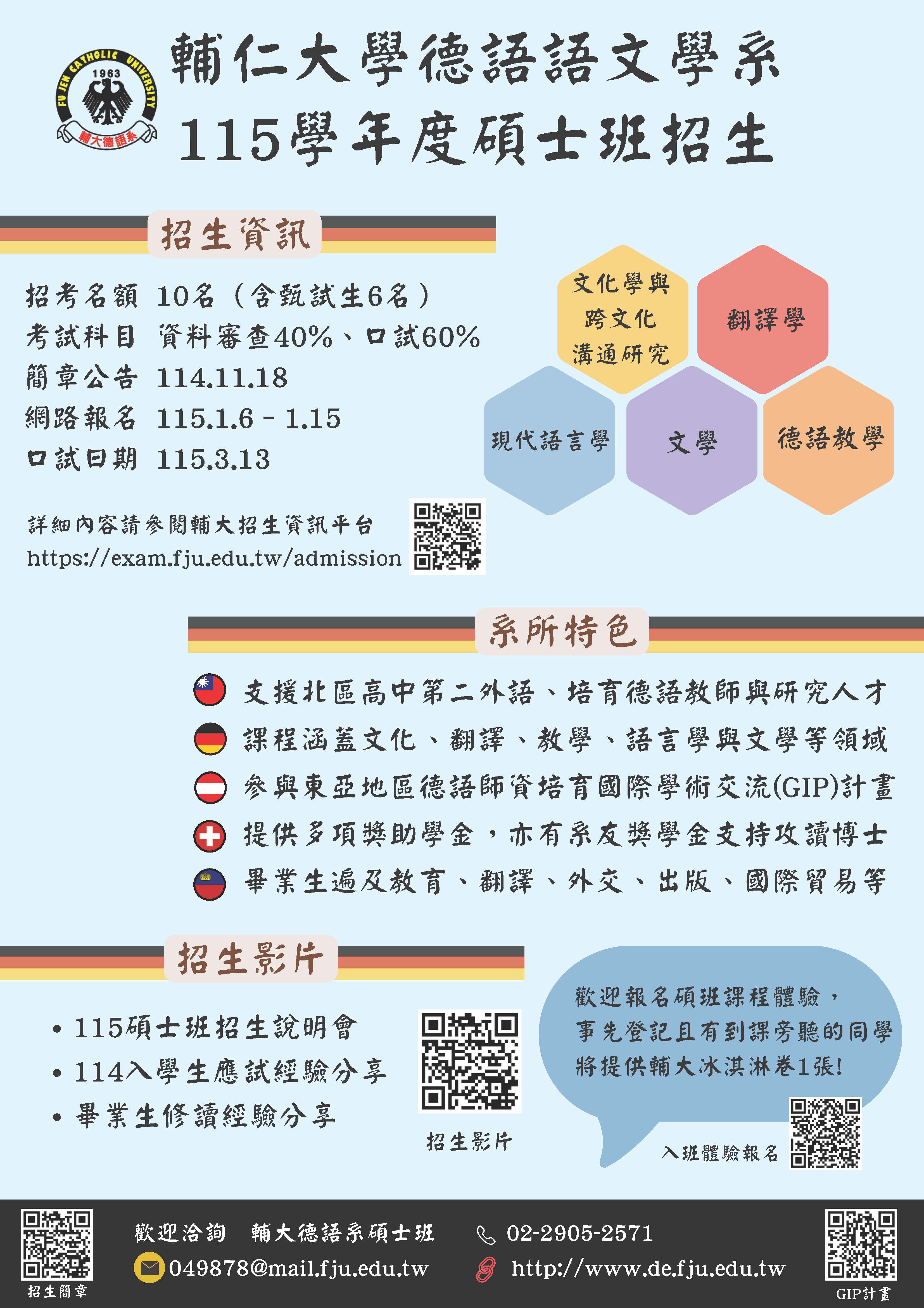 2025/11/18 10:47 [招生訊息]【輔大德語系115學年度碩士班招生】(網路報名115.1.6-115.1.15)