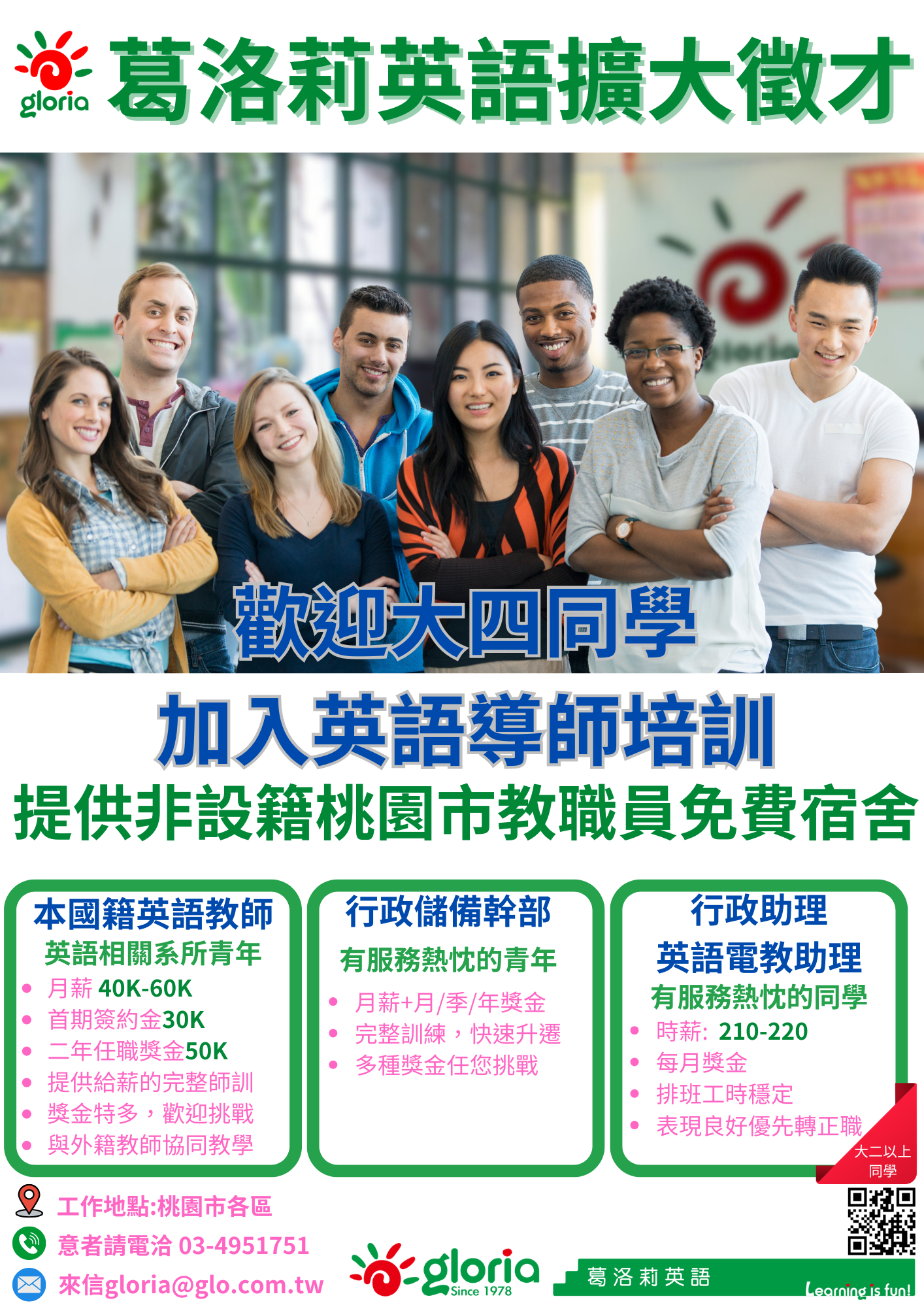 2026/04/08 11:58 [企業徵才]葛洛莉英語文教機構徵求全職英語教師